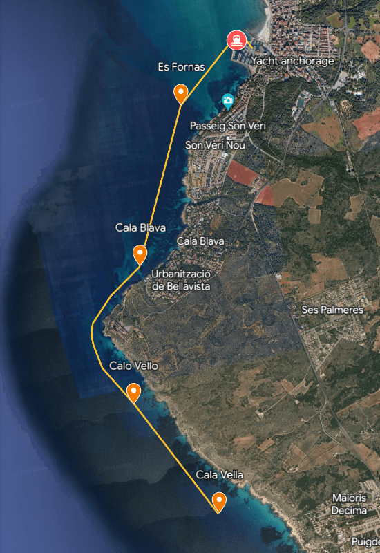 Welcome to the amazing bay of Caló Vello in Mallorca, where sea and sky intertwine, creating the perfect setting for an unforgettable marine adventure. The crystal clear waters of Caló des Oficials invite you for swimming and snorkeling. Retreat to the deck and enjoy the soothing sound of the waves and the magnificent view of the landscape. Caló Vello is the place where you can get away from the hustle and bustle, immerse yourself in nature and feel in harmony with the sea.