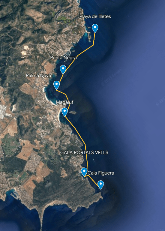 Palmanova Beach: This beach is a long sandy beach located opposite the tourist center of Palmanova. Here you can enjoy not only the beautiful beach, but also the surrounding gardens and the many cafes and restaurants where you can grab a bite to eat. In addition, the beach offers sunbed and umbrella rentals, as well as the opportunity to try different water sports such as water skiing, banana boating and diving.