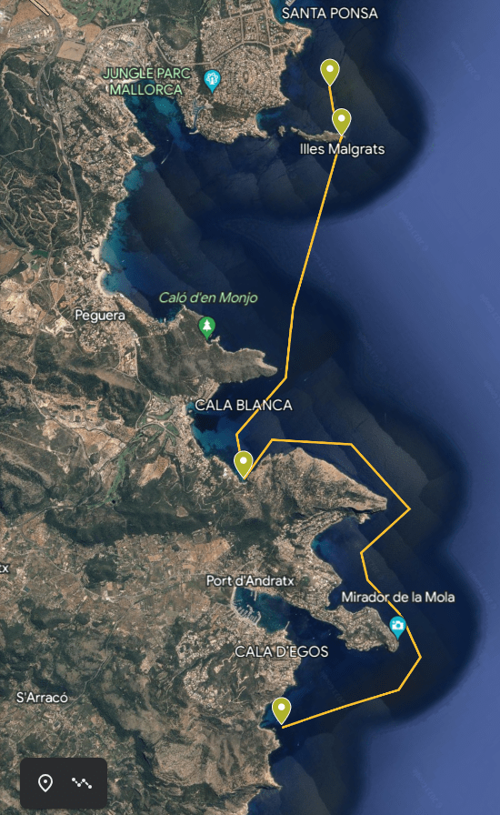 Cala d’Egos offers excellent maritime and underwater conditions for anchorage. The nearest harbor facilities are at Port d’Andratx, just 2.2 nautical miles from the bay. This makes it a convenient location for yachtsmen looking for a calm and safe place to anchor their yacht.